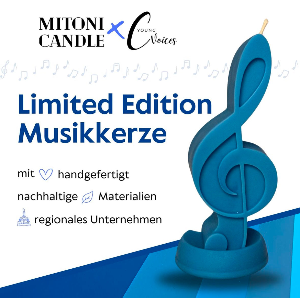 In Kooperation mit dem Chor „Young Voices“ aus Edermünde Grifte haben wir für ein Konzert eine Limited Edition Musikkerze erstellt.